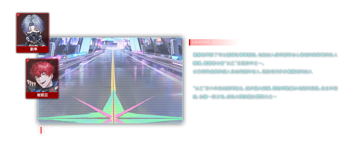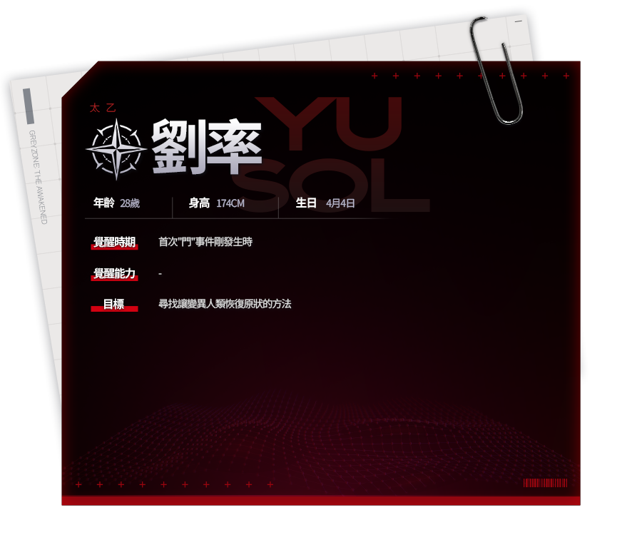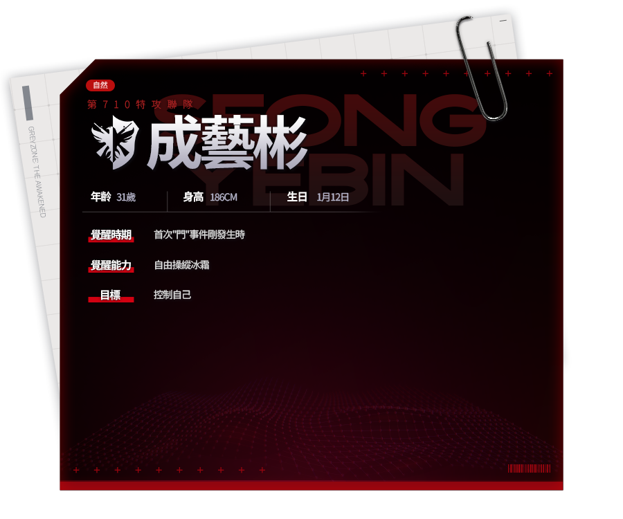 以麗水為據點活動的公會「太乙」會長兼引導者。召集渴望自由行動的覺醒者,請求他們協助達成共同目標。從傭兵團起步的團體,逐漸發展成為扎根於麗水的公會。