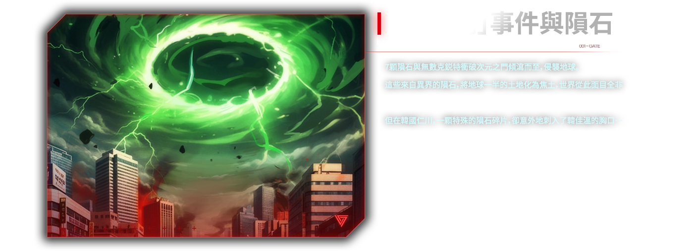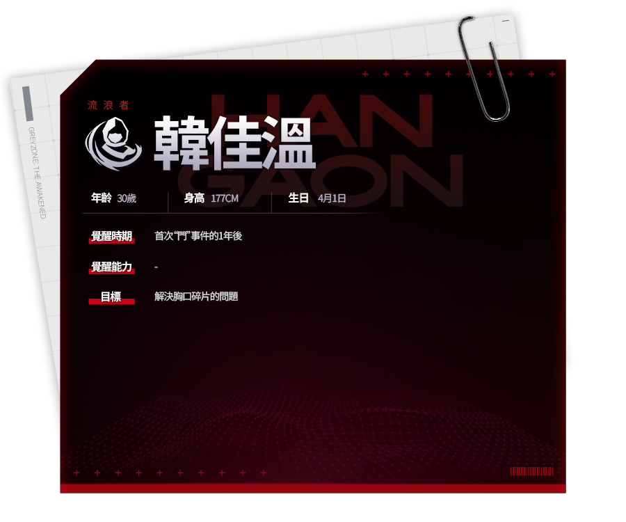 韓佳溫曾經是醫學院學生,卻在“門”事件中,被隕石碎片刺入胸口,沉睡七年。這片碎片不僅未奪走他的生命,更賦予他強大引導者力量。