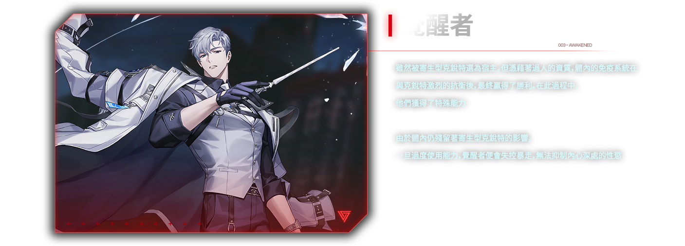作為早期覺醒者,曾遭受威脅與利誘,但由於耿直的個性,最終選擇加入軍隊並成為一名軍官。