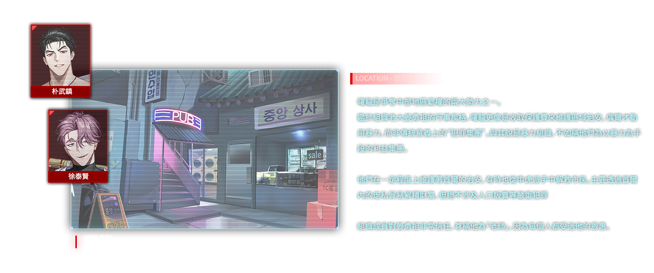原為新虎派底層成員,但在韓佳溫一行人顛覆新虎派當天成功逃脫。被組織強制注射的藥物後,留下中毒後遺症,導致手部顫抖。
